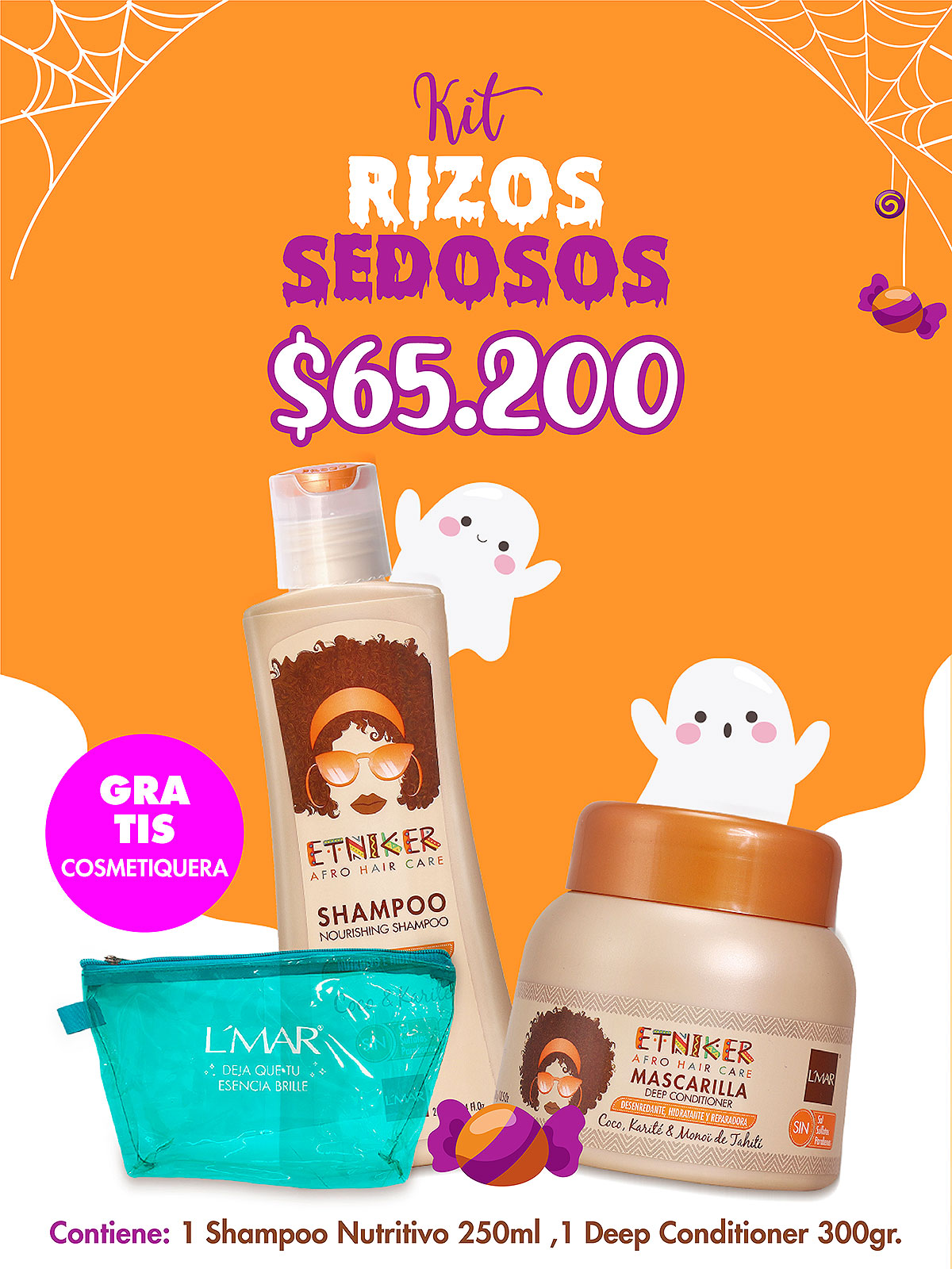 Con el Kit Rizos Sedosos de ETNIKER, limpia, nutre y suaviza profundamente tu cabello rizado, eliminando el frizz y devolviéndole toda su vitalidad.